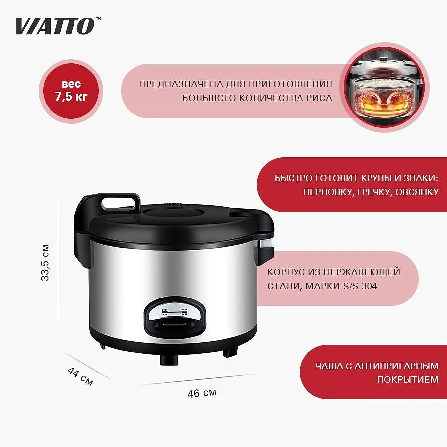 Рисоварка VIATTO VA-CRC13 предназначается для варки и поддержания температурного режим риса и прочих круп на предприятиях общественного питания, торговли и пищевых производствах. Автоматический переход в режим поддержания риса в разогретом состоянии по окончании готовки. Равномерный нагрев позволяет приготовить большое количество риса, не повреждая его структуру. Материал корпуса - нержавеющая сталь, материал чаши - алюминиевый сплав с антипригарным покрытием, материал ручек - безопасный термоизоляционный материал.
