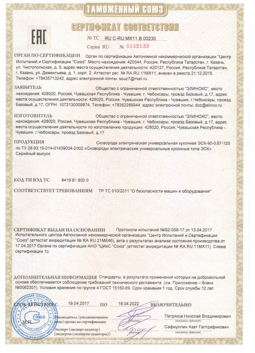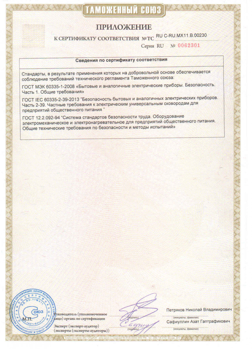 • Время разогрева сковороды до 230 °C: 15 мин.