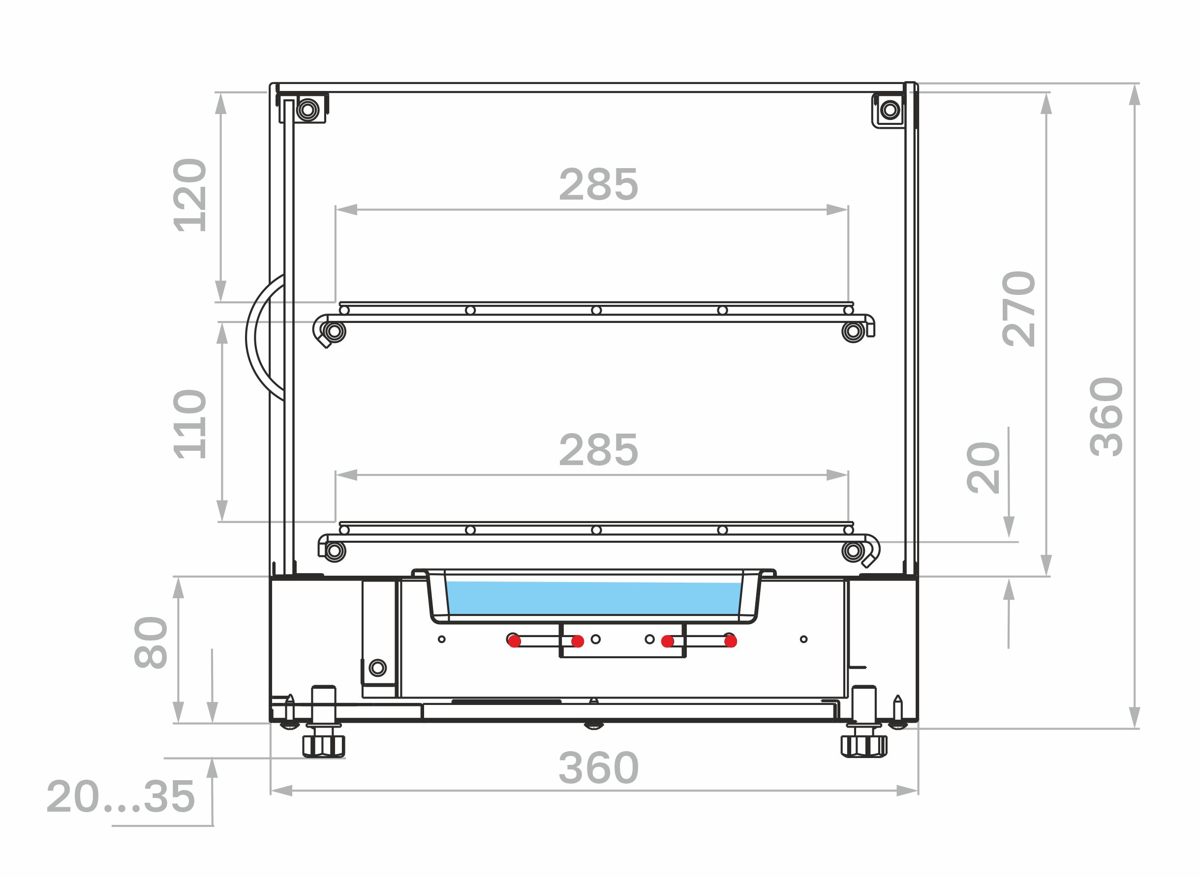 Тепловая витрина Carboma AC36 HWB 0,6-1 серии Africa предназначается для демонстрации, кратковременного хранения и поддержания в горячем состоянии блюд, выпечки, закусок и прочей продукции на предприятиях общественного питания, торговли и пищевых производствах. 2 перфорированные полки, 4 раздвижные створки. Витрина оснащена выдвижным поддоном для сбора крошек и термостатом. Материал корпуса и полок - нержавеющая сталь.