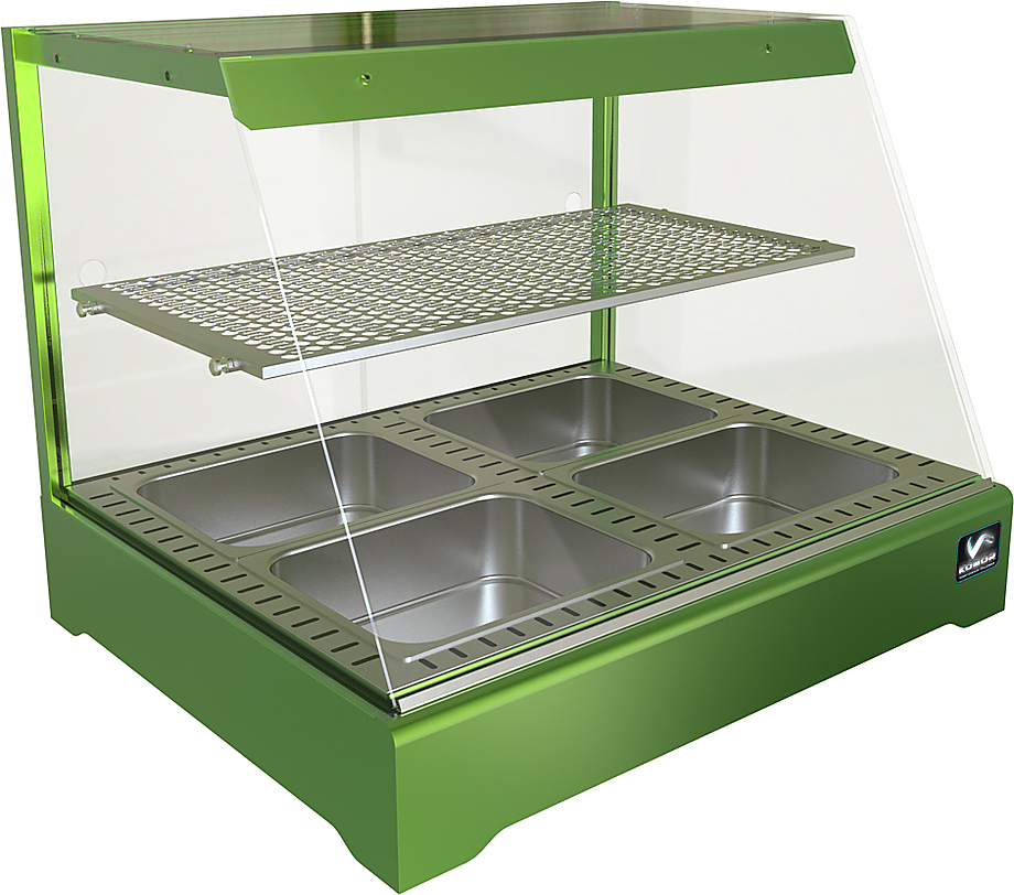 Настольная тепловая витрина Кобор CR1-80H серии Standart предназначена для демонстрации, подогрева и поддержания в теплом состоянии различных блюд на предприятиях общественного питания и торговли. Модель оснащена перфорированной полкой 754х350 мм и подсветкой.
