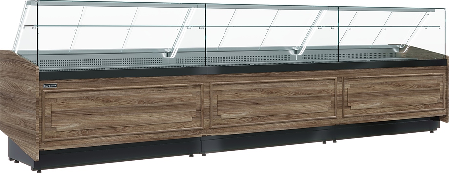 Витрина тепловая Carboma KC80 SH 1,0-1 BORNEO 2 используется на предприятиях общественного питания, торговли и пищевых производствах для демонстрационной выкладки, кратковременного хранения и поддержания в горячем состоянии готовых блюд, кондитерских и хлебобулочных изделий. Модель оснащена термостатом, LED-освещением и регулируемыми опорами. Материал зоны выкладки и столешницы - шлифованная нержавеющая сталь, внешней панели – ламинированная древесноволокнистая плита средней плотности (МДФ), нижней облицовки и профиля под стекло – сталь с покрытием черной краской (RAL 9005), верхней стойки – легкий полиметилметакрилат (ПММА) высокой степени прозрачности, термоизоляции – пенополиуретан.