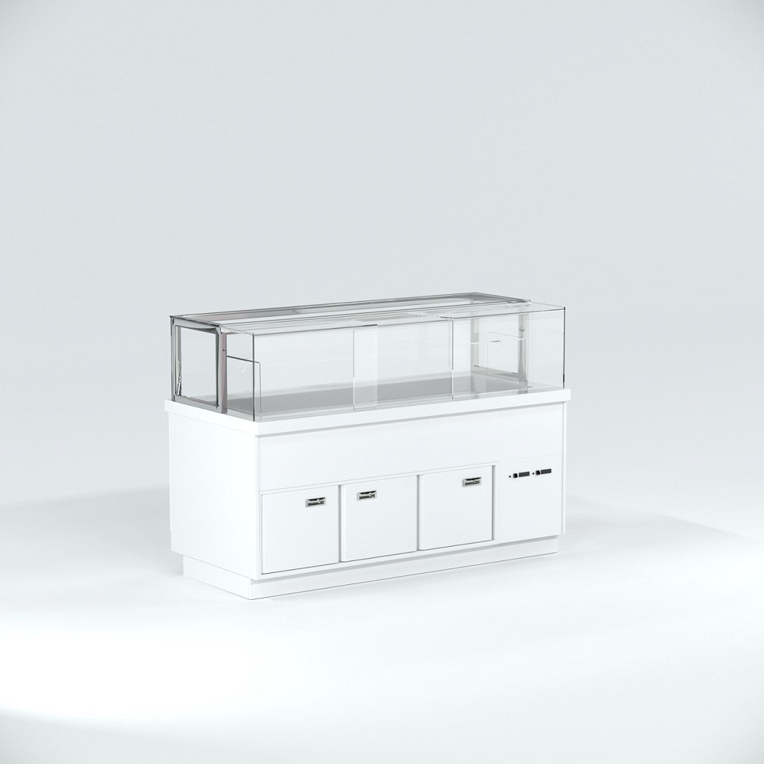 Витрина тепловая Finist Maria Mt-20-9 используется для демонстрационной выкладки, подогрева и кратковременного хранения готовых блюд и выпечки на предприятиях общественного питания и торговли. Модель оснащена микропроцессорным блоком, автоматической оттайкой, выдвижной полкой, подсветкой и дверьми-купе. Материал фронтальных и боковых панелей облицовки - МДФ панели, материал купола и полок - просветленное стекло, материал столешницы - искусственный камень.