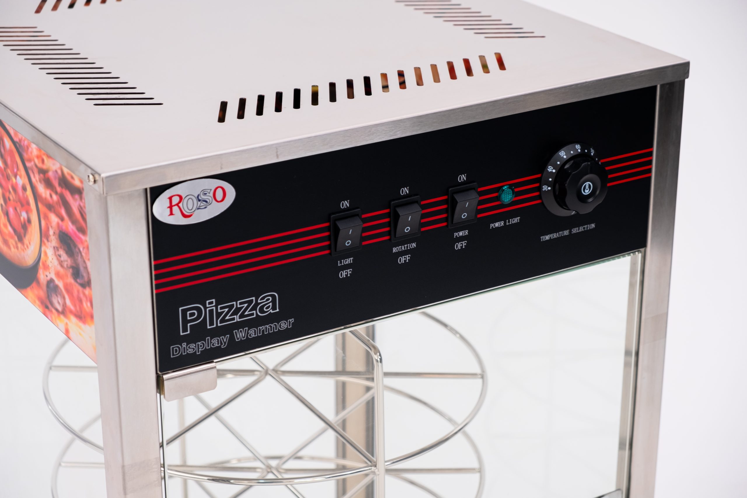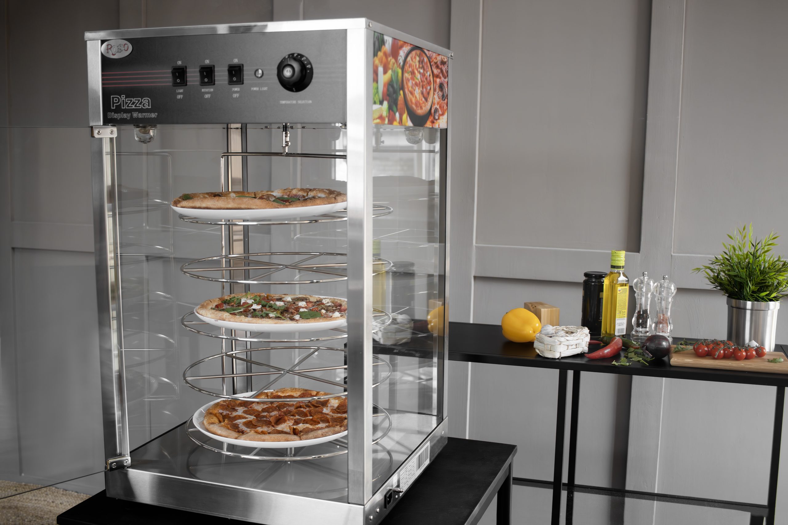 Тепловая витрина Rosso HW-816 предназначена для демонстрационной выкладки и поддержания в горячем состоянии различных блюд на предприятиях общественного питания, торговли и пищевых производствах. Модель оснащена термостатом, декоративной лампой освещения, терморегулятором и 4 полками.