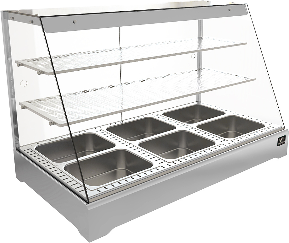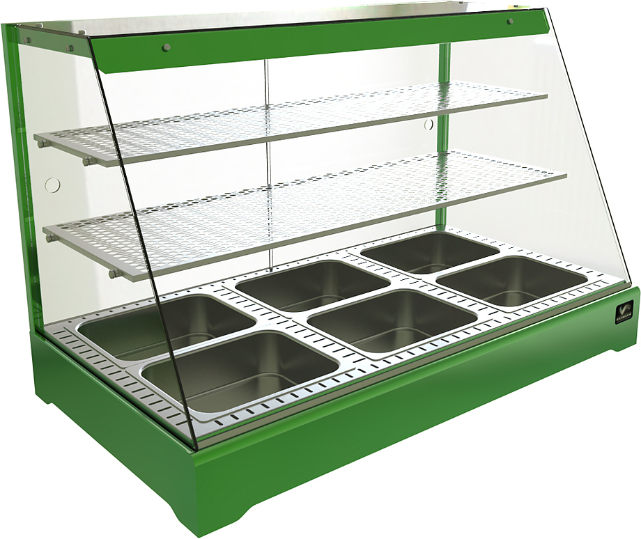 Тепловая витрина Кобор CR2-117H серии Standart предназначена для демонстрации, подогрева и поддержания в теплом состоянии различных блюд на предприятиях общественного питания и торговли. Модель оснащена перфорированными полками 1120х350 и 1120х280 мм и подсветкой.