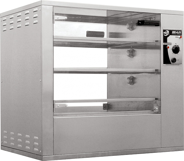 Тепловая витрина Sikom ВН-4.21М используется на предприятиях общественного питания, торговли и пищевых производствах для подогрева, кратковременного хранения и демонстрационной выкладки готовых блюд. Модель оснащена механическим управлением, индикатором нагрева, ручкой регулировки температуры, индикатором "Сеть", 3 съемными блоками и сквозными стеклянными дверцами. Возможность размещения витрины под гриль для кур МК-21.