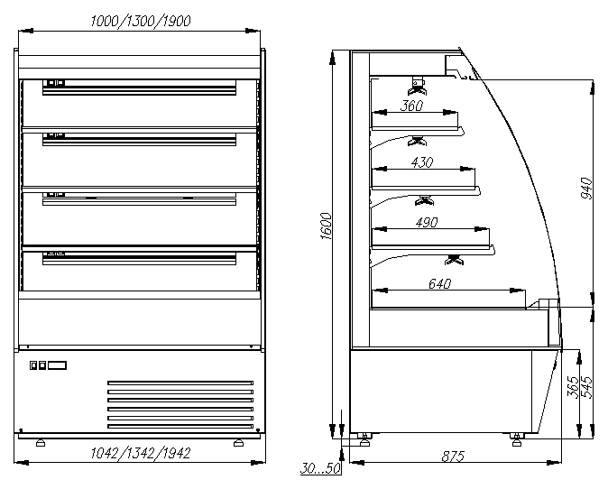 Тепловая витрина Carboma F 16-08 SH 1,0-2 (1600/875 BT-1,0) используется на предприятиях общественного питания и торговли для поддержания в горячем состоянии, кратковременного хранения, демонстрации и продажи выпечки, различных закусок и готовых блюд. Модель оснащена прозрачным стеклопакетом, 3-мя полками с кронштейнами c возможностью расположения под углом и изменения высоты, ночной шторкой и регулируемыми ножками высотой от 30 до 50 мм. Задняя стенка, полки и верхняя обшивка выполнены из стали с полимерным покрытием, сменные декоративные панели - из нержавеющей стали.