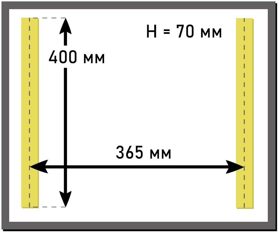 - Расстояние между центрами запайки: 365 мм
