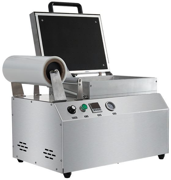 Скин-упаковочная машина Hualian HLV-300VST PREMIUM используется на предприятиях общественного питания, торговли и пищевых производствах для вакуумной упаковки в скин-пленку различных пищевых продуктов. Модель оснащена электромеханическим управлением, температурным контроллером, вакуумной камерой, держателем рулона с пленкой и откидной крышкой. Материал корпуса и камеры - высококачественная нержавеющая сталь.