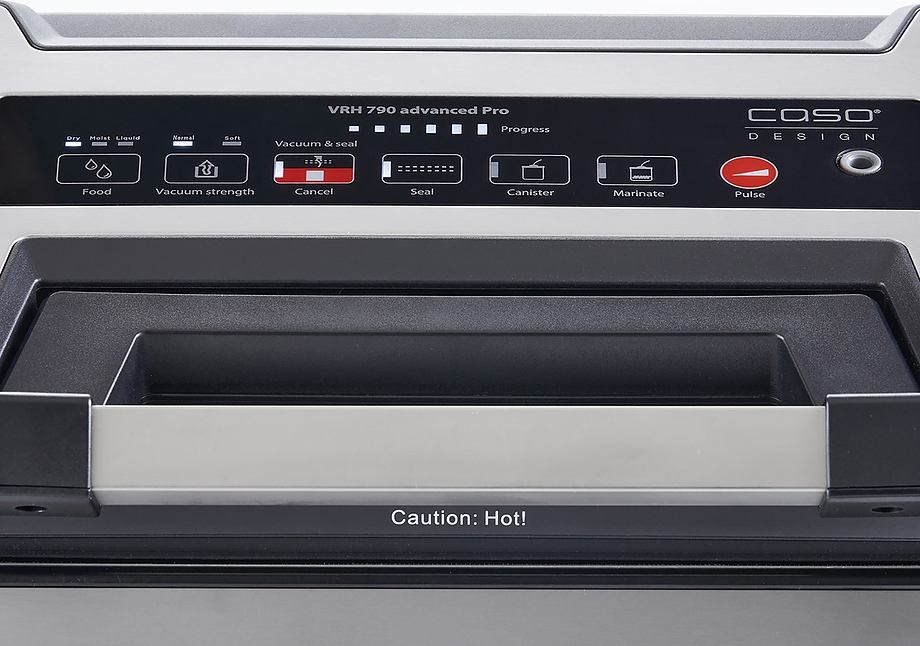 Вакуумный упаковщик CASO VRH 790 advanced используется на предприятиях пищевой промышленности, общественного питания и торговли для герметичной упаковки полуфабрикатов и готовых блюд в пакетах или контейнерах, что способствует продлению их срока хранения. Модель оснащена сенсорным управлением, белым светодиоидным дисплеем, индикацией режимов работы, электронным контроллером температуры сварочного шва, съемным поддоном для сбора влаги и ручкой. Материал корпуса и ручки - высококачественная нержавеющая сталь.