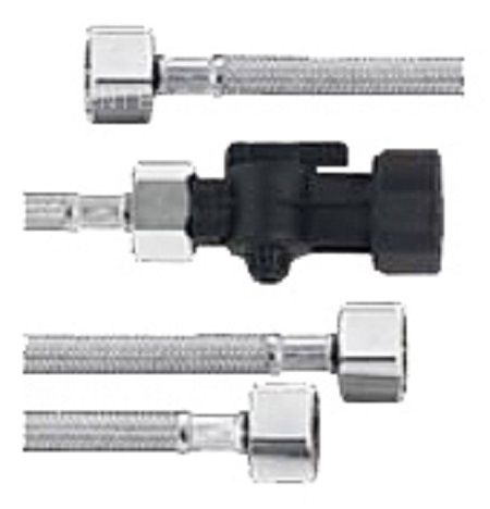 входн. и выходн. шланги G3/4 - G3/4 + запирающий клапан G3/4 - G1, DN8, 2 метра, нерж. металл, супергибкость